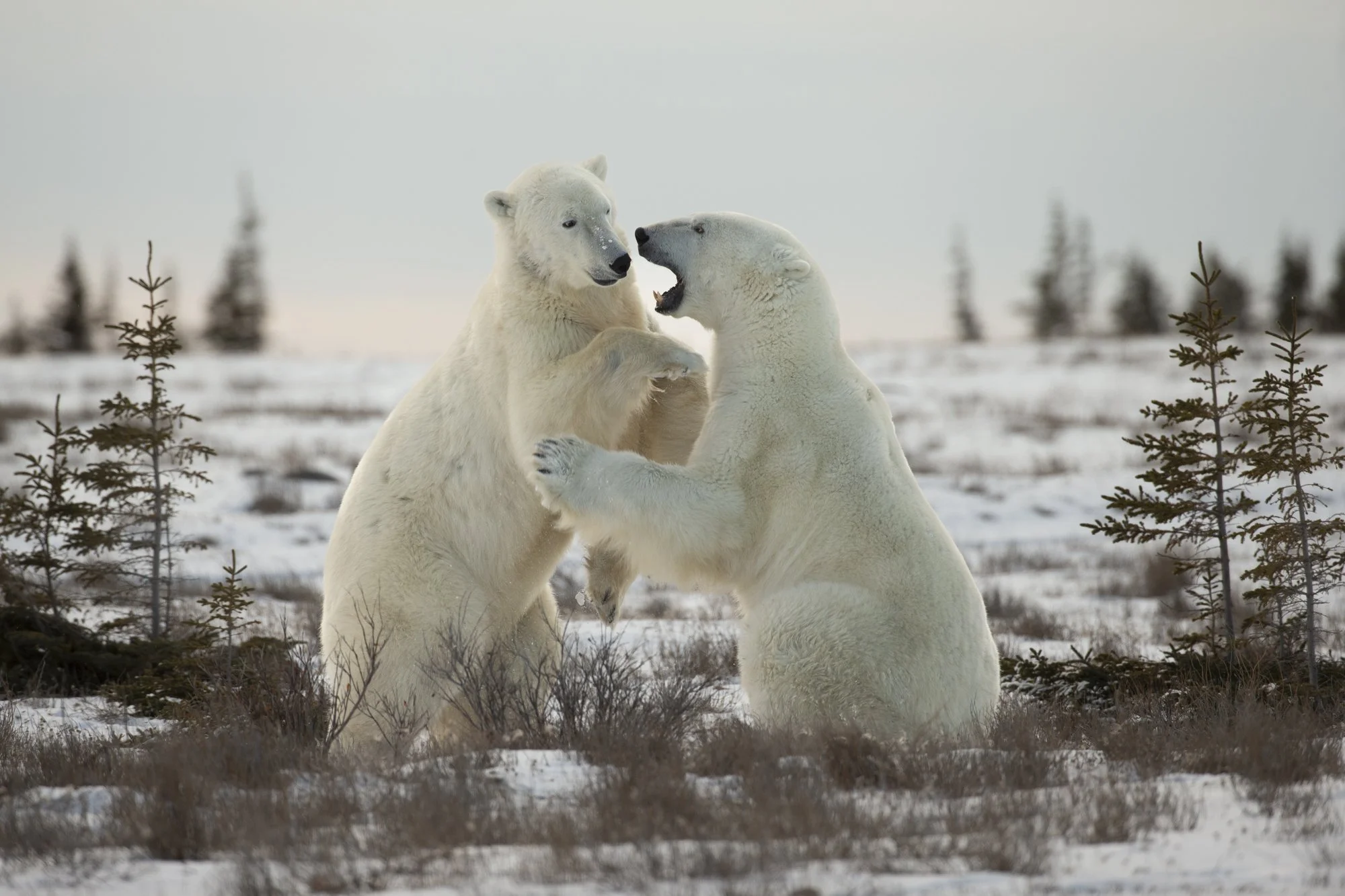 Polar Bear male play fighting Churchill, Manitoba, Canada