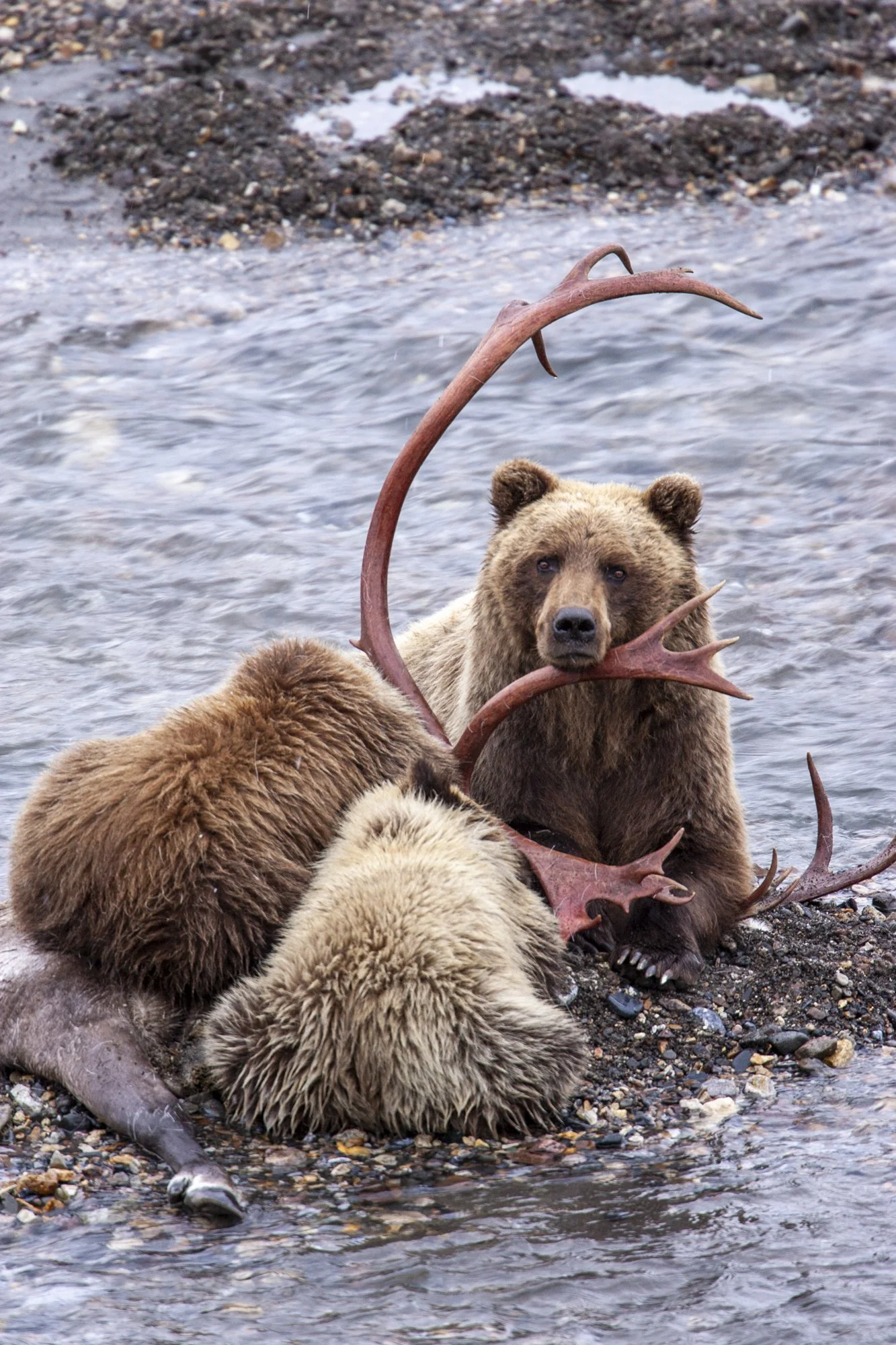 Grizzly Bear on Caribou Kill Denali National Park Alaska
